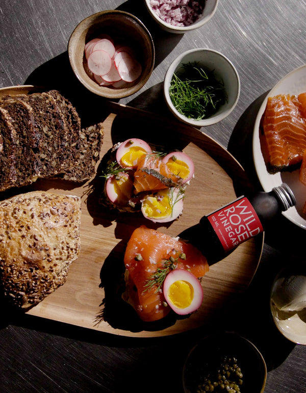 Why bother with food colorings when you have mother nature’s much more delicious alternative, the beet? Plus, it’s a perfect complement to Wild Rose Vinegar, creating earthiness, floral notes, and zing, all in balance. These are some good eggs. We recommend topping them with anything and everything you like. Below are just a few ideas.
