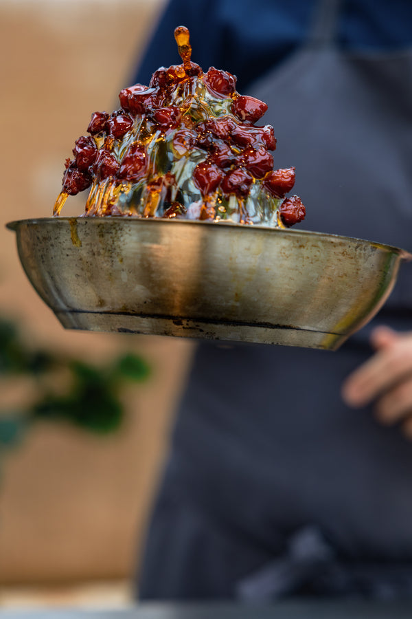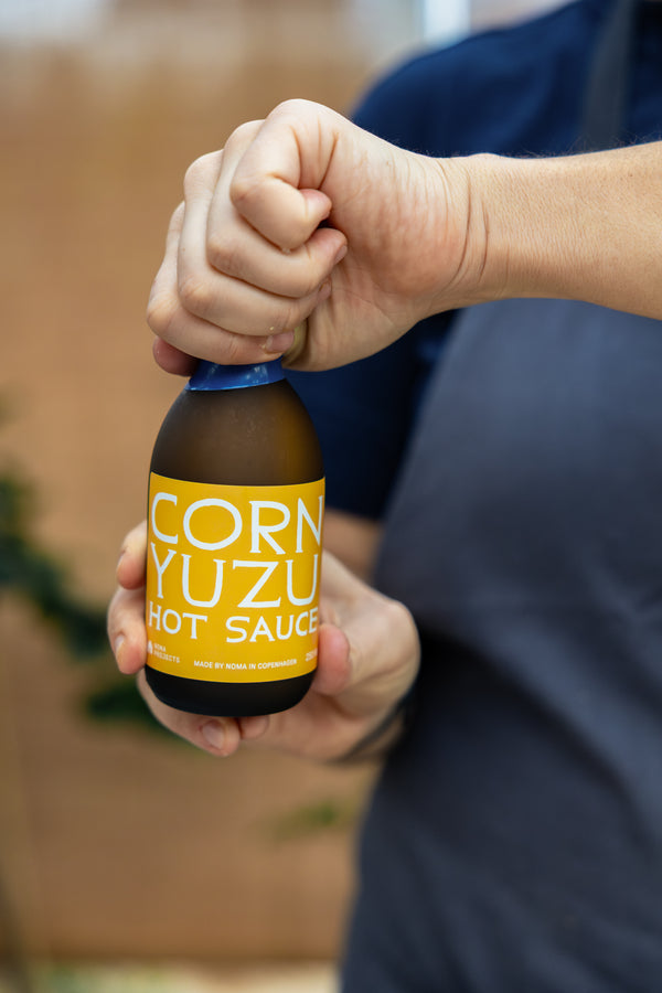These tacos lean on contrast—soft eggs against crisp chorizo, warm tortillas holding cool slices of avocado and the lift of herbs and pickled onion. The Corn Yuzu Hot Sauce adds a bright, clean heat with a touch of citrus. It's the breakfast of champions.