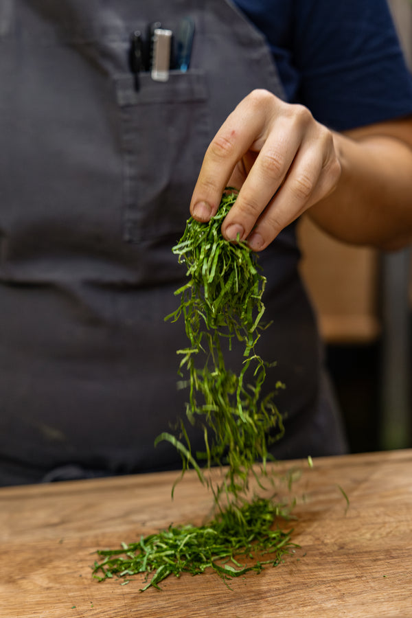 - Stir in the minced garlic, basil, and parsley, and mix until the herbs are evenly distributed.