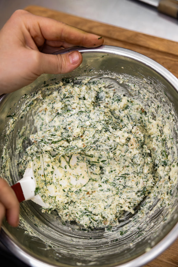- Place the feta cheese in a medium bowl. Mash it with a fork or small whisk until broken down but still slightly textured.
