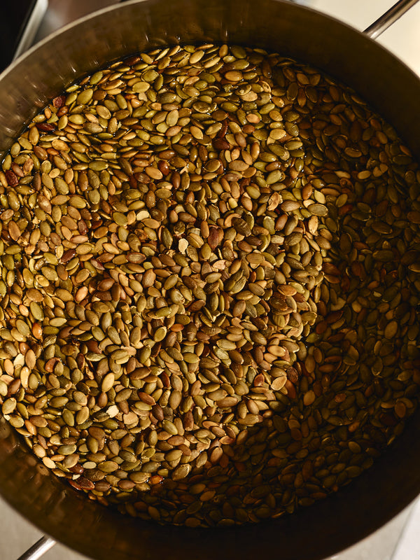 - In a pot with a lid, cook the pumpkin seeds in broth for over 40 minutes, or until they become tender.ย