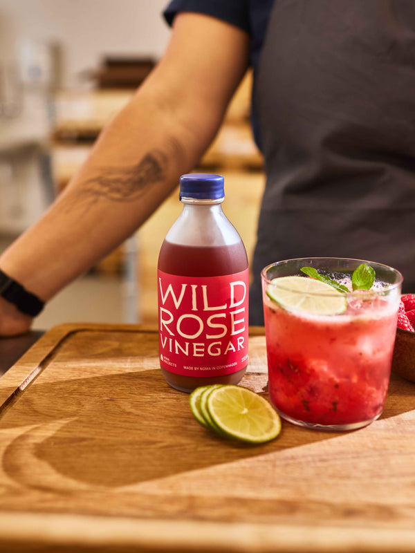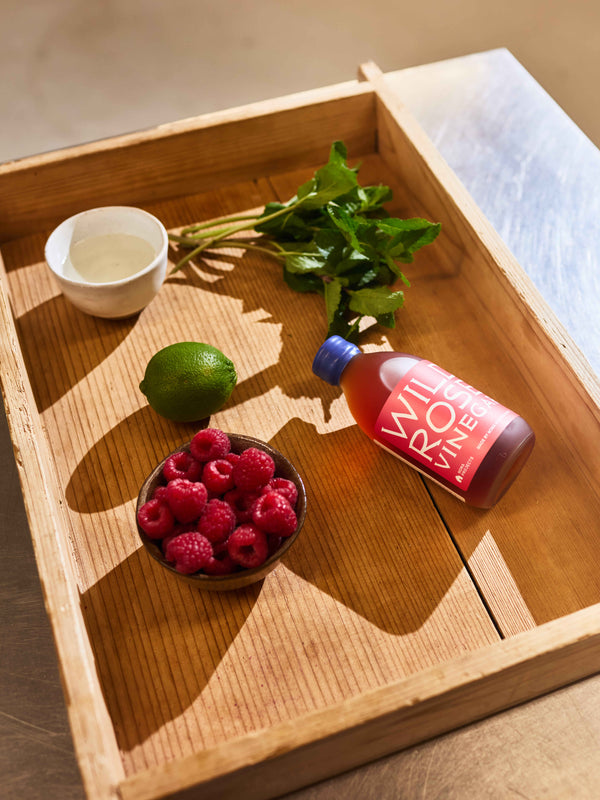 This is a summer mocktail that could very easily become a summer cocktail, depending on your mood. It’s inspired by our Creative Director Thomas Frebel’s habit of splashing his sparkling water with a bit of Wild Rose Vinegar. Take a sip, and it'll be hard to go back to your usual can of flavored seltzer.