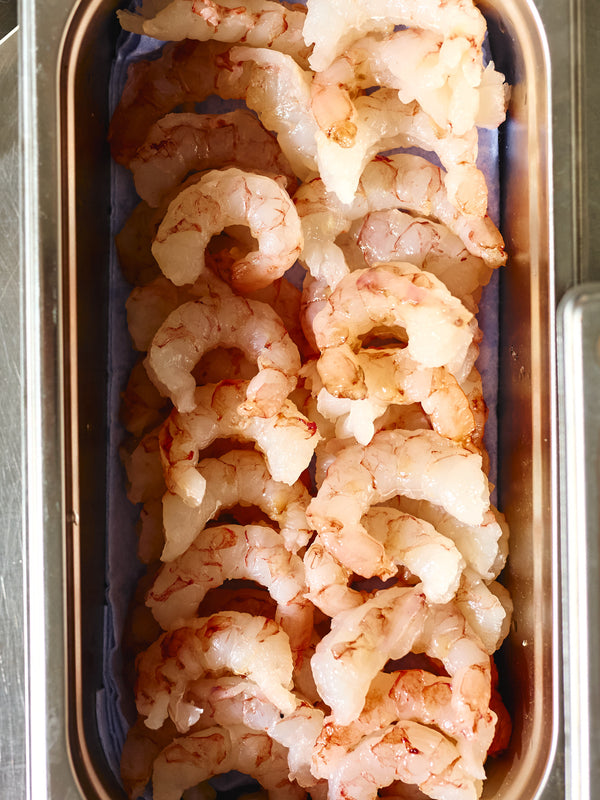 - Blanch the shrimp in a pot for no longer than 1 minute and cool them down in ice water.