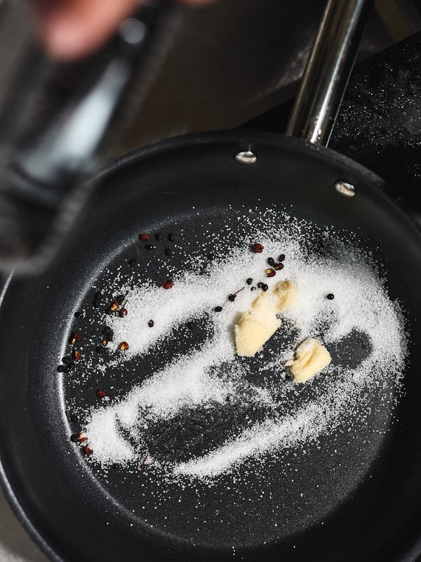 - Warm a pan over high heat and add the pepper until it releases its aromas.