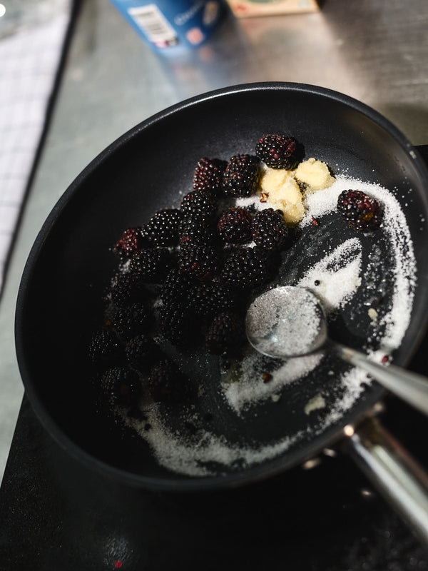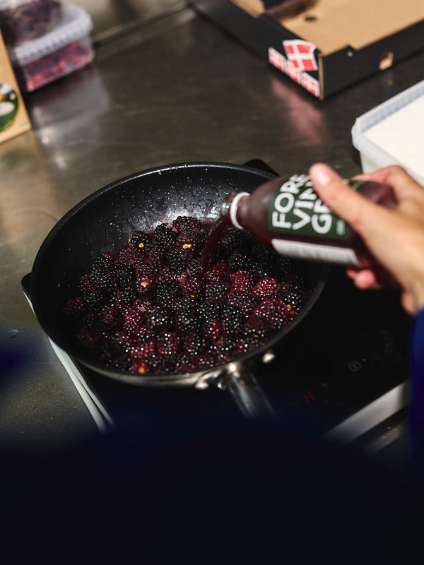 - Add the butter, sugar, water, and berries. Sautรฉ, and then add the Forest Vinaigretteย